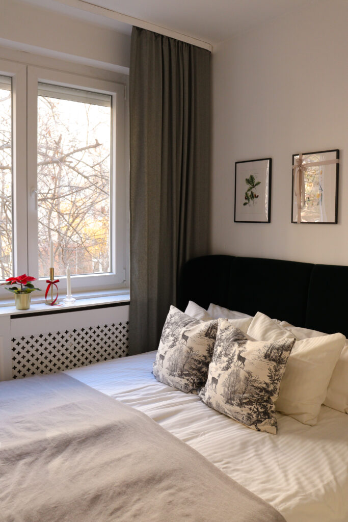 A pici hálószobában pedig egy csipetnyi piros és egy kis fenyőfa jelzi, hogy elérkeztünk a karácsonyhoz.
